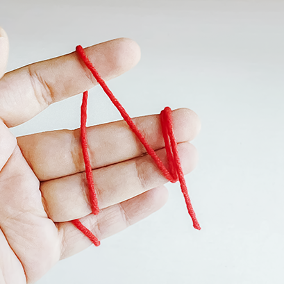 As shown, wrap the yarn around your left hand's pinky and index finger.