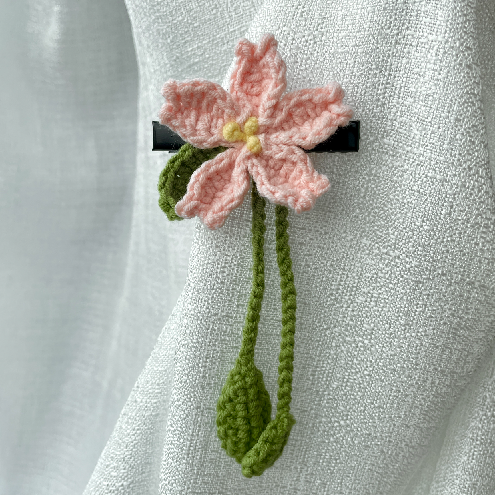 Add a splash of springtime charm to your accessories collection with our Handmade Crochet Sakura Leaf Hairpin. Order now and enjoy the versatile beauty of this lovely piece!